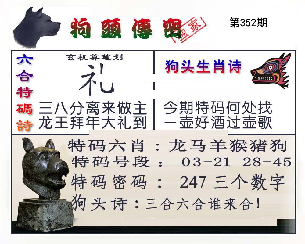 | 352期 | 猪羊兔 | 猪狗 | 龙 |